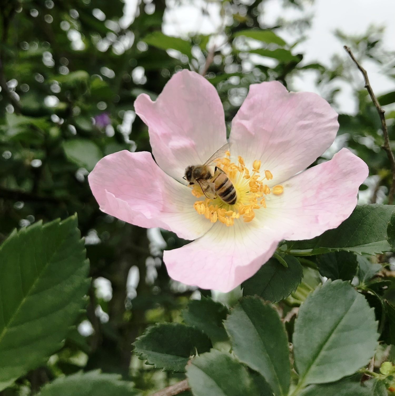 L’églantier, Rosa canina, est un arbuste rustique et facile à cultiver, très répandu dans les jardins, haies et espaces naturels. Il se distingue par ses branches fines et arquées et ses fleurs simples, rose pâle, qui apparaissent au printemps et attirent pollinisateurs et insectes utiles. Son port buissonnant permet de structurer l’espace tout en restant esthétique.